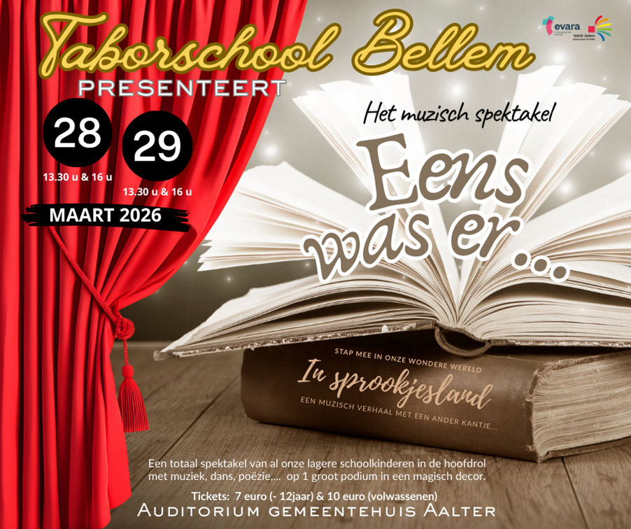 Op 28 en 29 maart organiseren we met al onze lagere schoolkinderen weer een spetterende musical met 4 voorstellingen in het auditorium van Aalter. Traditiegetrouw wordt de musical een groot spektakel waarin onze leerlingen hun talenten trots in de verf zetten. De kijkers worden meegenomen in een boeiend verhaal.